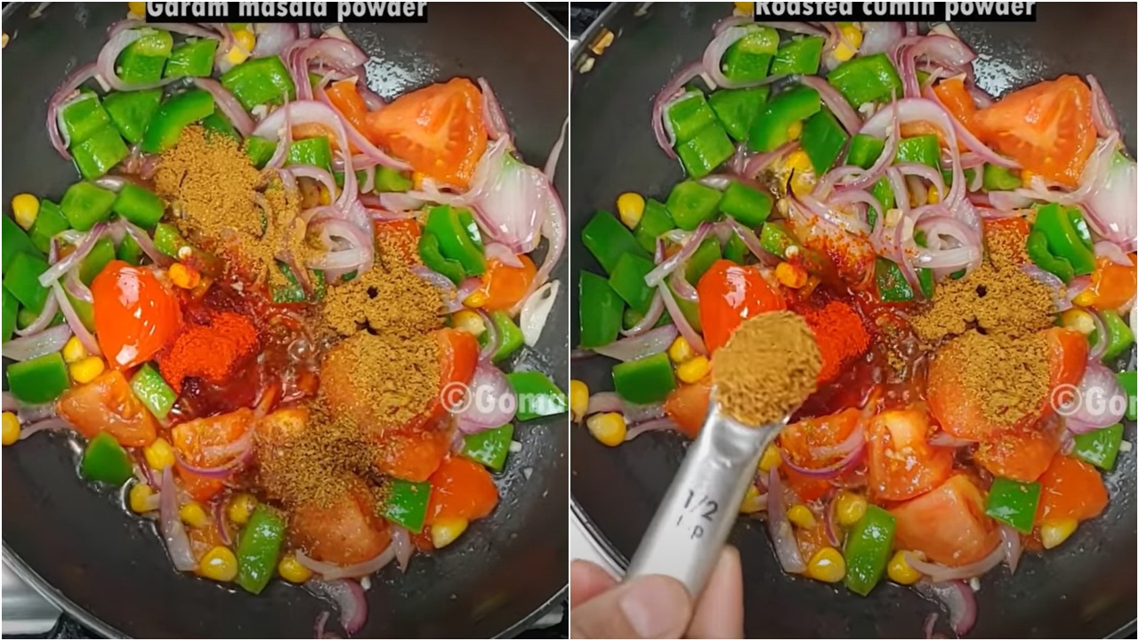 The recipe is versatile enough for you to include more veggies like carrot, green peas, cauliflower or potatoes. More veggies will not only add more flavor but will also increase the nutritional content in the dish. Here I’m added sweet corns with capsicum. If you have cooked rice ready then you can make this in a jiffy. Capsicum is a very flavourful vegetable. We get this in 3 colours, red, green, and yellow. I always buy the green capsicum, here I used green and red capsicum with sweet corn. Nowadays kids like to have sweet corn, so, we can make use of it. Carefully combine with this sweet corn to capsicum. No need to prepare any fancy curries for side dish, It can goes well with raita and tomato ketchup too.