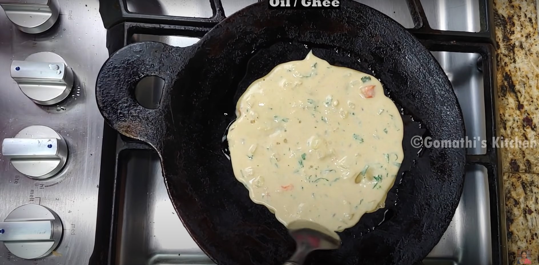 To tempering the wheat dosa batter, heat oil in a pan.