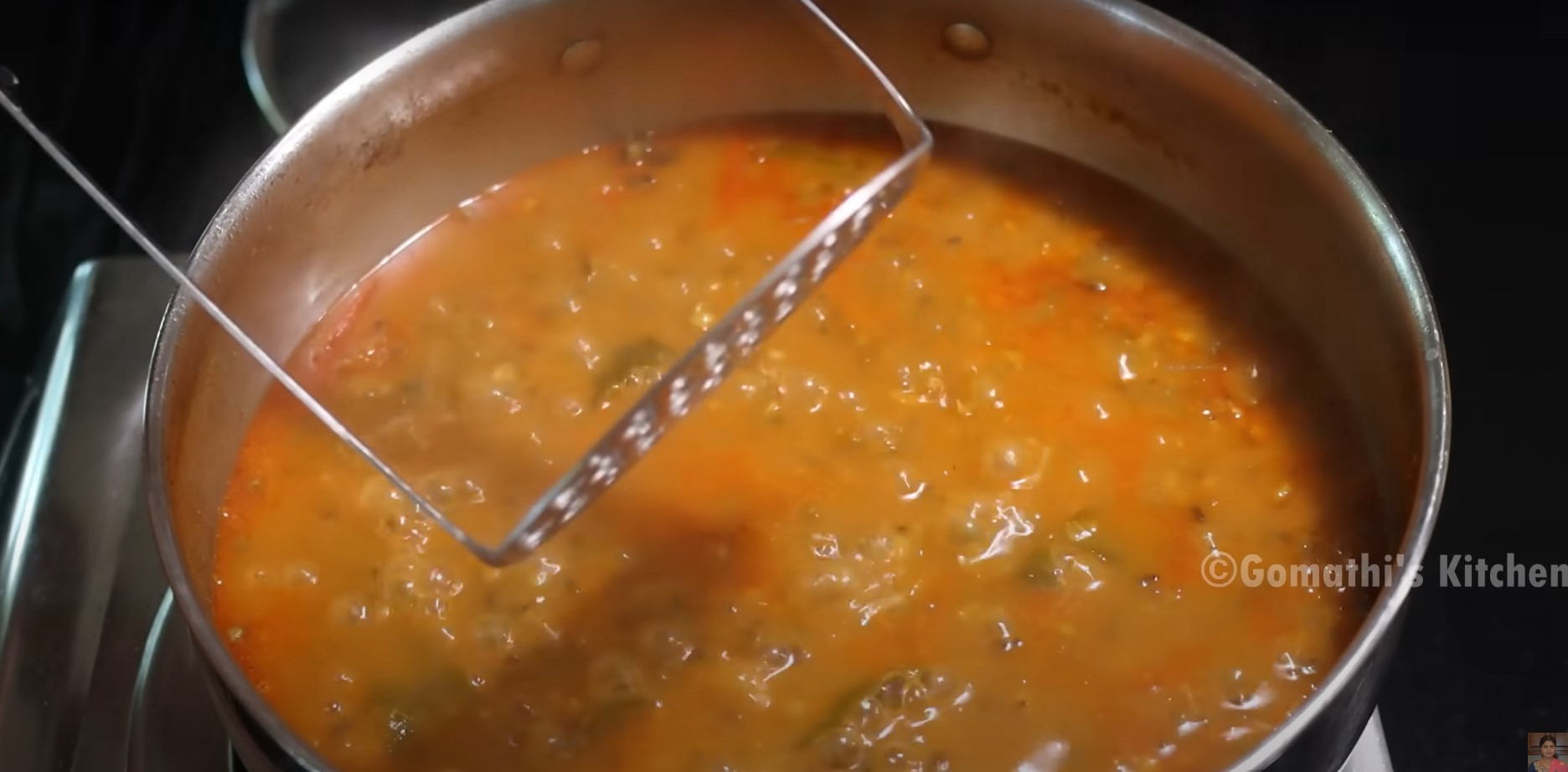 To make gravy thick do smash the green gram in gravy with masher. Or any wooden spatula.