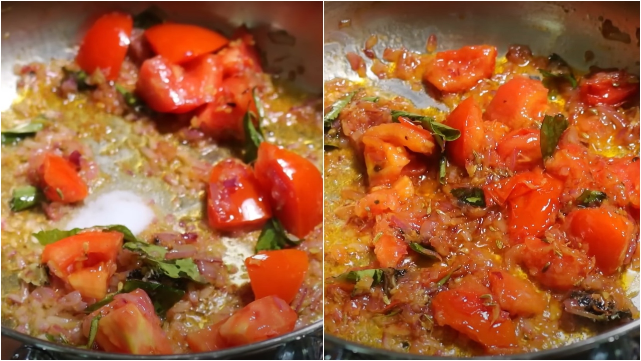 Add chopped tomatoes and salt sauté till it become mushy.