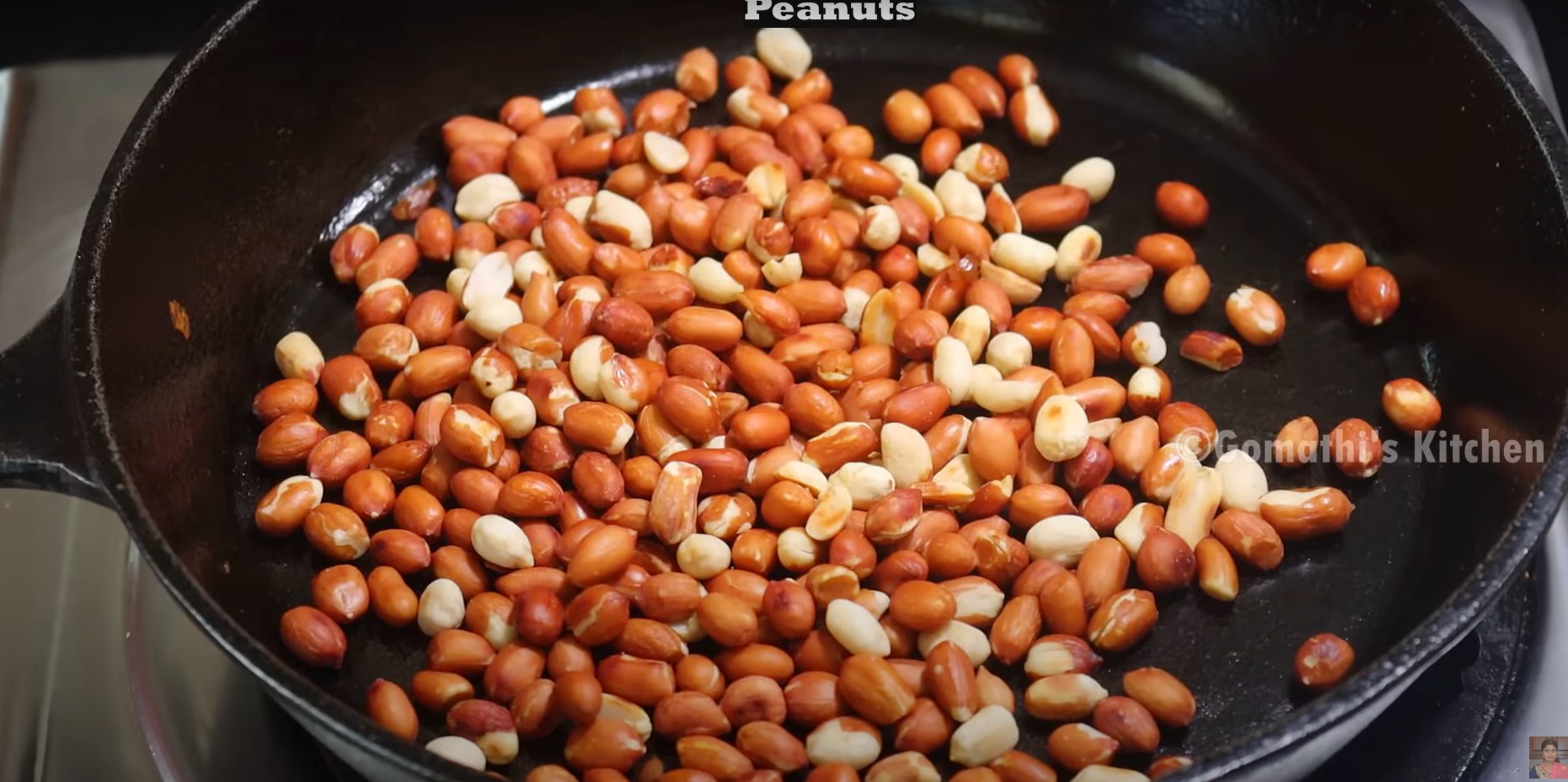 Heat the pan and add peanuts.